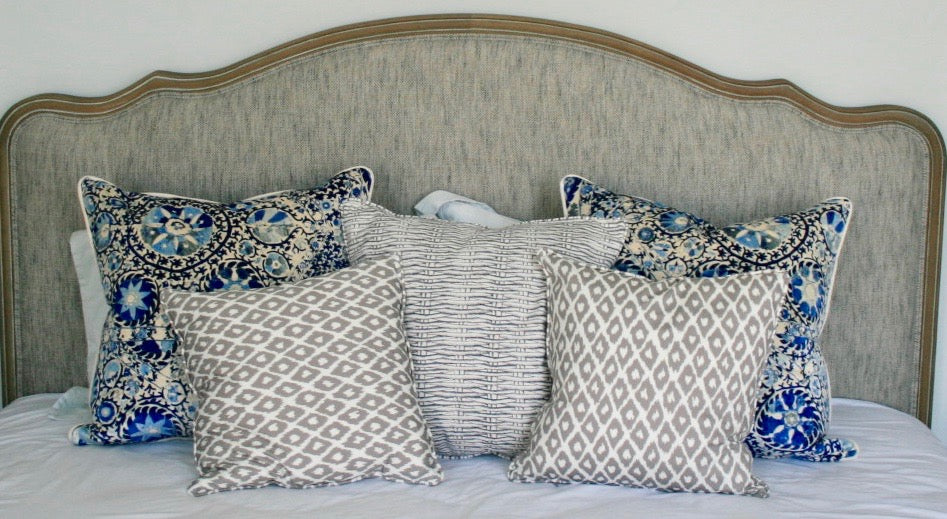 The Lacuna London luxury cushion and throw collection was inspired from living in Istanbul for 5 years which cultivated Sasha's love of design and textiles which led to creating soft furnishings as part of Lacuna London Interiors offering. Drawn by patterns found in natural environments and the “feel good” emotions they awaken in people. All our cushions and throws are handmade in our London Studio.
